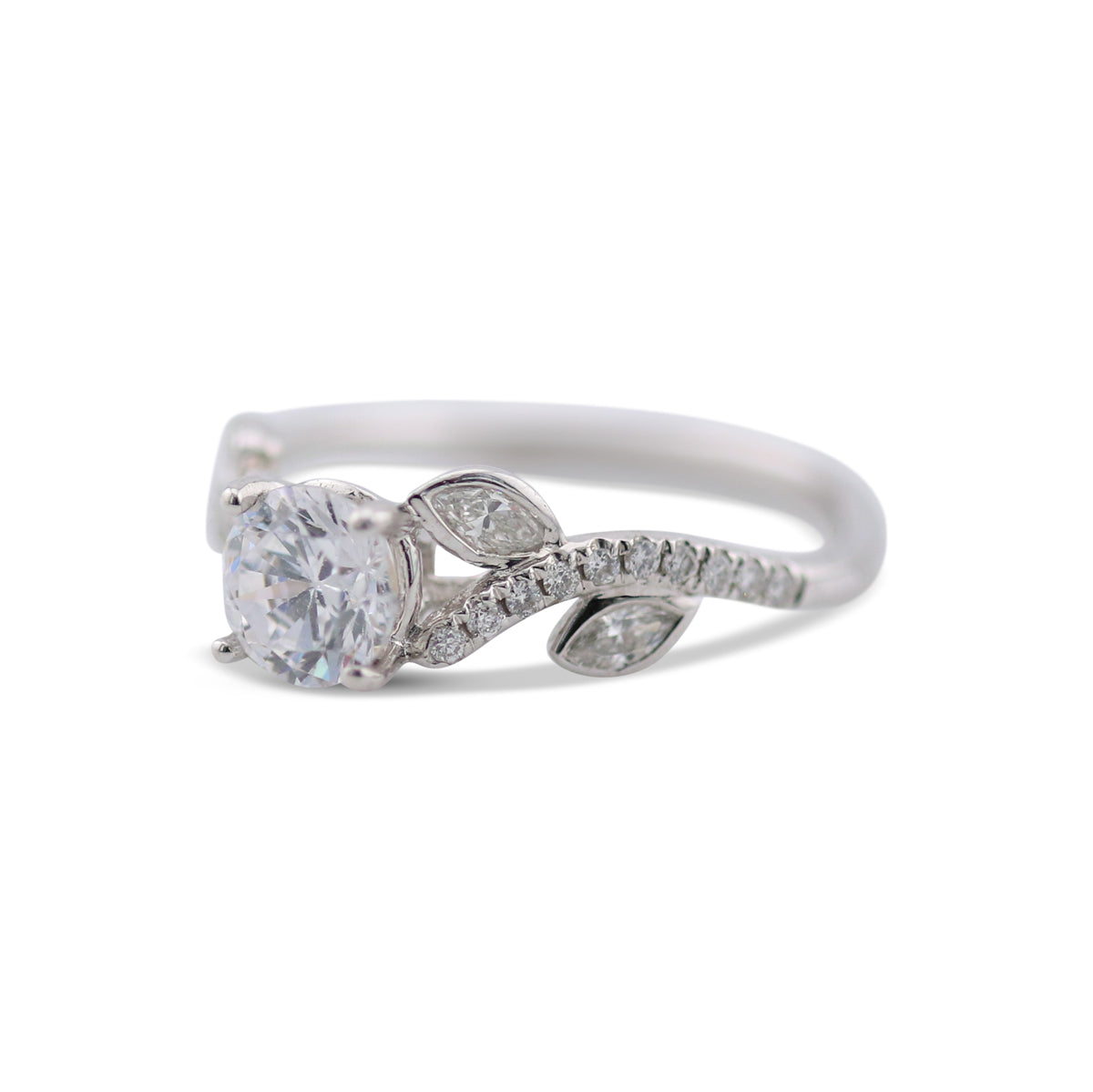 14K White Gold 0.37 Ct Diamond Leaf Mounting